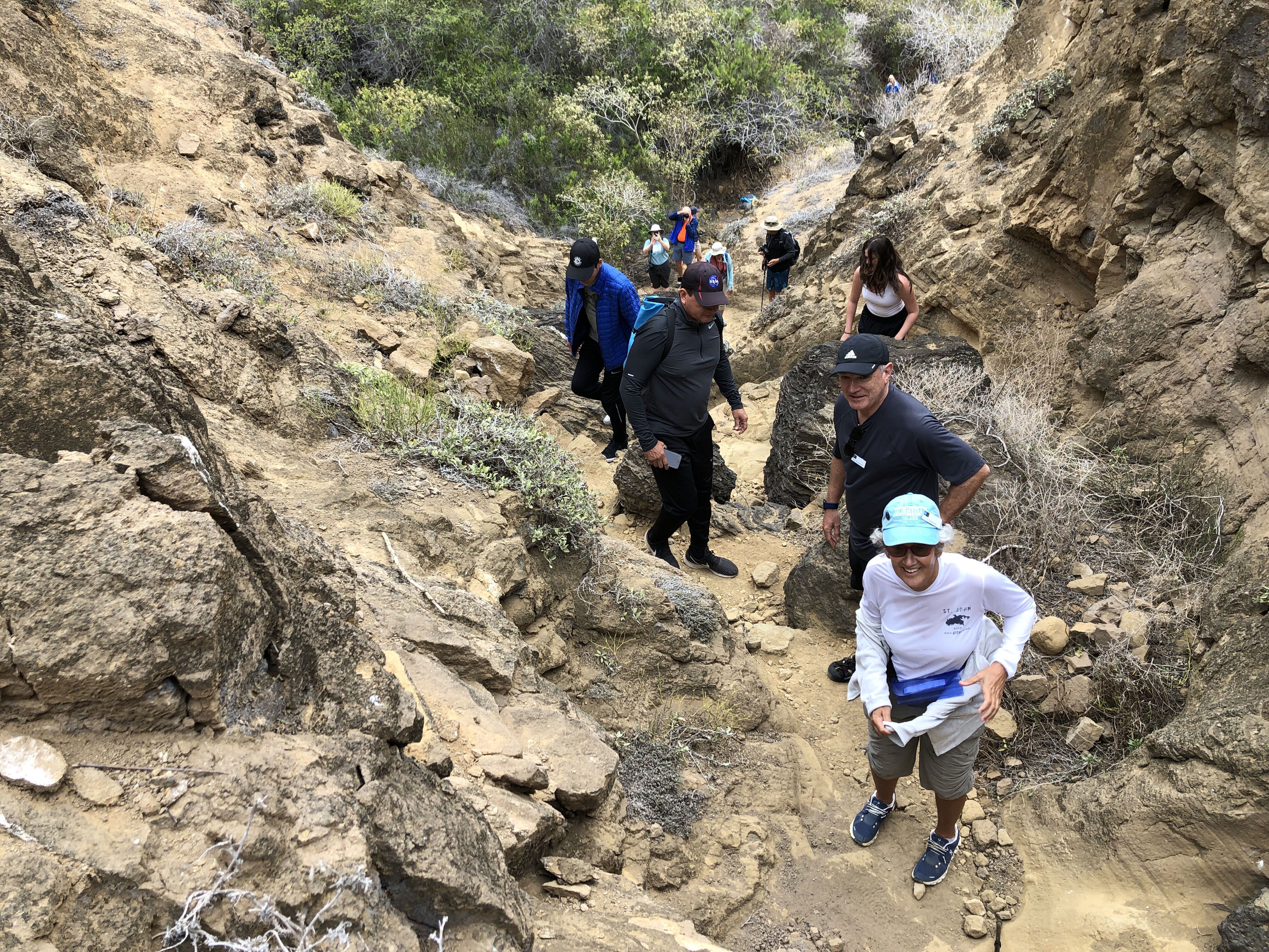 Our last day in the Great Bear Rainforest proved to be one full of excitement, education, and awe. After dropping anchor in the idyllic glacial fjord of Green Inlet, we set out to explore the rocky shoreline and forested granitic fjord walls. The dense fog gradually turned into a wispy mist, which exposed different peaks and valleys of the forest as it moved through. We took turns kayaking through a delightful cove that was loaded with ochre sea stars, rockweed, and blue mussels so thick and dense that the rock they were attached to was hardly visible between them. A river otter scurried along the shore and bald eagles soared above us. From the Zodiacs we visited nearly a dozen thunderous waterfalls that were running hard and fast from the heavy overnight rains. We observed harbor seals observing us back; they were quietly periscoping their furry heads up and out of the water as we approached the rapids where they were hunting salmon making their final journeys upriver to spawn. Upon our return to National Geographic Venture , expedition diver Nick Brown shared his extensive underwater video footage from the area. His presentation was interrupted, of course, by whale sightings, which we rushed onto the bow to appreciate.