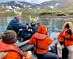 During lunch, Delfin II continued sailing downriver in the Marañón. We eventually arrived at the vicinity of Nauta Caño. Some of us went kayaking in the small tributary and had a blast there, while the rest of us opted to explore by skiff. Once more, we had the pleasure of observing the abundant birdlife, monkeys, and sloths that have become dear to us. Closer inspections of floating vegetation patches revealed a treasure trove of grasshoppers and other insects, plus a variety of colorful frogs. A bit later, a spectacular sunset framed our return to the ship, our beautiful home away from home. We enjoyed our farewell dinner to celebrate our last full day exploring, this time spent learning about and loving the Peruvian Amazon.