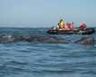 Then, after lunch (eating is optional), we made a landing on Detaille Island in Lallemand Fjord, a historic site where the British Antarctic Survey Station W was located during the late 1950’s. Abandoned in 1959 because of severe ice conditions, the buildings are in great shape, a virtual time capsule providing a glimpse of what life was like at a remote research station in this frozen wilderness. The only residents living on the island today is a large colony of Adélie penguins. Zodiac cruises around the island offered great views of this Antarctic species that breeds farther south than any other penguin.