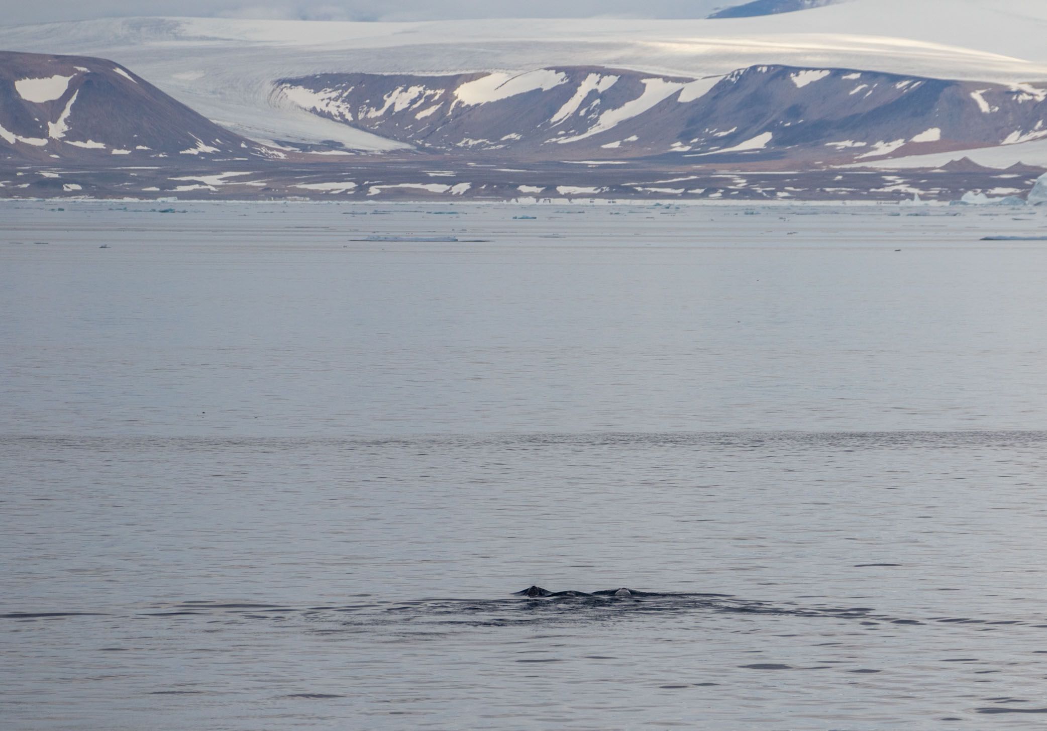 The water was just like a mirror, and the views were spectacular. In the middle of the calm, we spotted a heart-shaped blow. Suddenly, we were surrounded by bowhead whales. So many of them in all directions: feeding, resting, sailing. Magnificent!