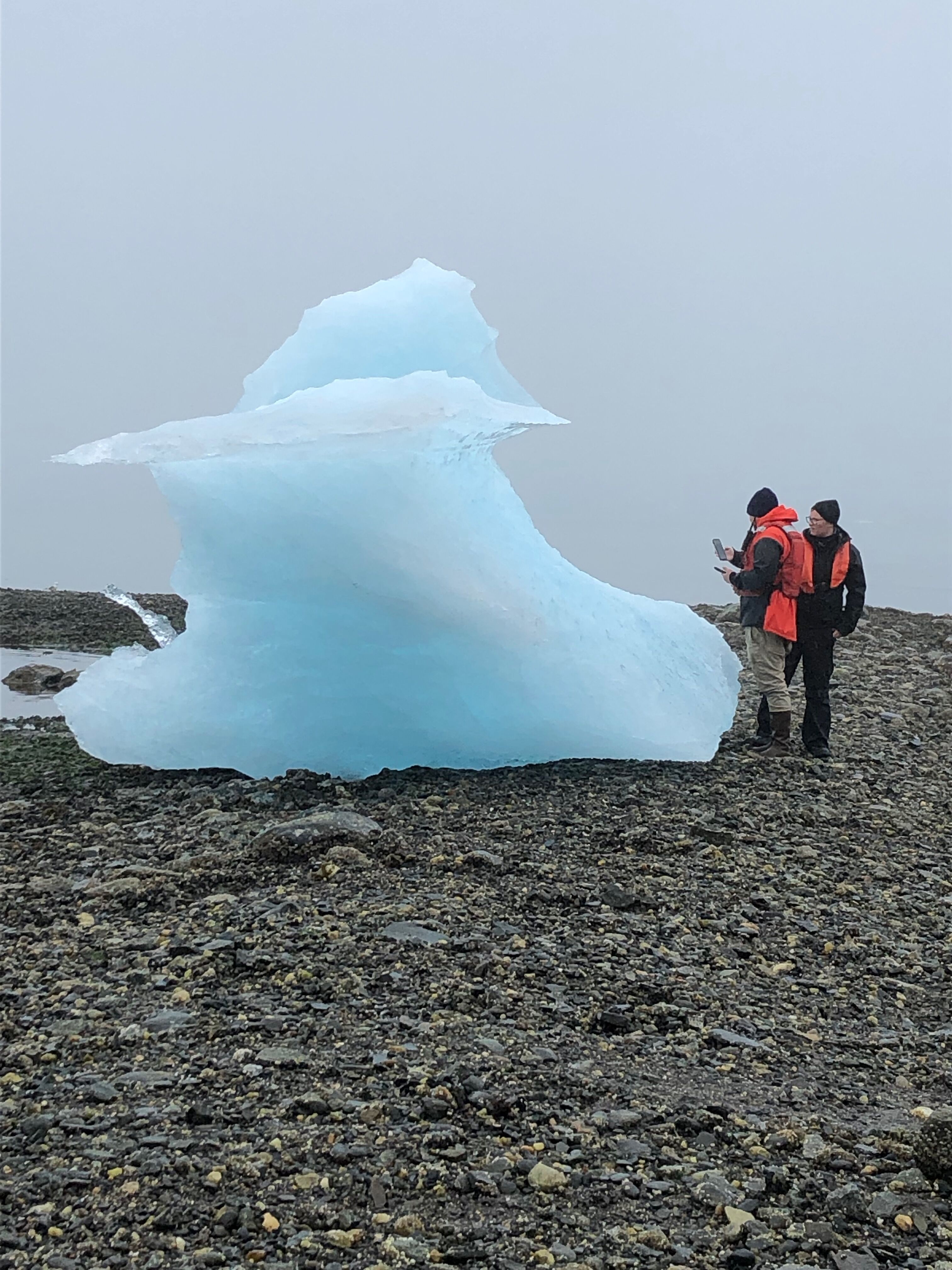 A couple of hours later, we spotted a pair of bears asleep on the ice. They didn’t so much as twitch as the ship edged closer and closer, and we began to wonder whether in fact they were alive. They eventually woke up when the ship was only a few hundred yards from them, but they seemed more bothered by having been woken than by the presence of the ship. One of them was a very large female, and we suspect the one napping near her was a second or third-year cub. They had recently consumed a seal and soon wandered away from the picked-over carcass to resume their slumber a bit farther from the ship.