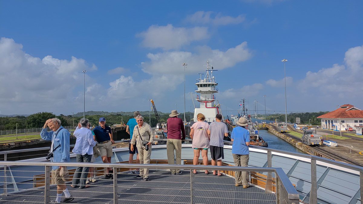 Today, we spent the entire day onboard National Geographic Venture in transit to our next destination for land operations. Our expedition leader, Annie Fiske, did not even wake us up with her melodious tones until the late hour of 8:30! For those guests that did choose to rise with the sun, we were greeted with an escort of a couple hundred long-beaked common dolphins, porpoising and bow-riding in the morning light. After about twenty minutes, we left them behind; an Olive’s Ridley sea turtle was also seen sun-bathing on the surface of the ocean. Both encounters were excellent omens for the rest of the day.