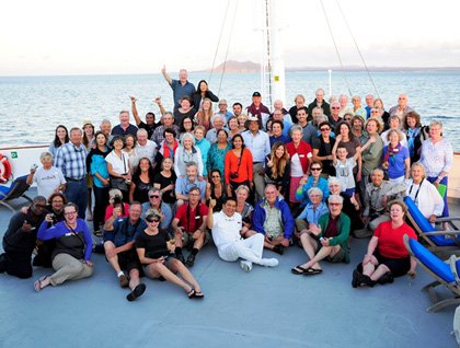 The day at sea was a great chance to watch for passing seabirds. Conditions were not ideal for viewing, as we were heading into a stiff south-east trade wind. But these same winds were powering the flight of a variety of seabirds that were observed from the decks during the day. Largest and most conspicuous were brown and red-footed boobies, and also lesser frigatebirds. Terns were well represented with sooty and white terns and both brown and black noddies.