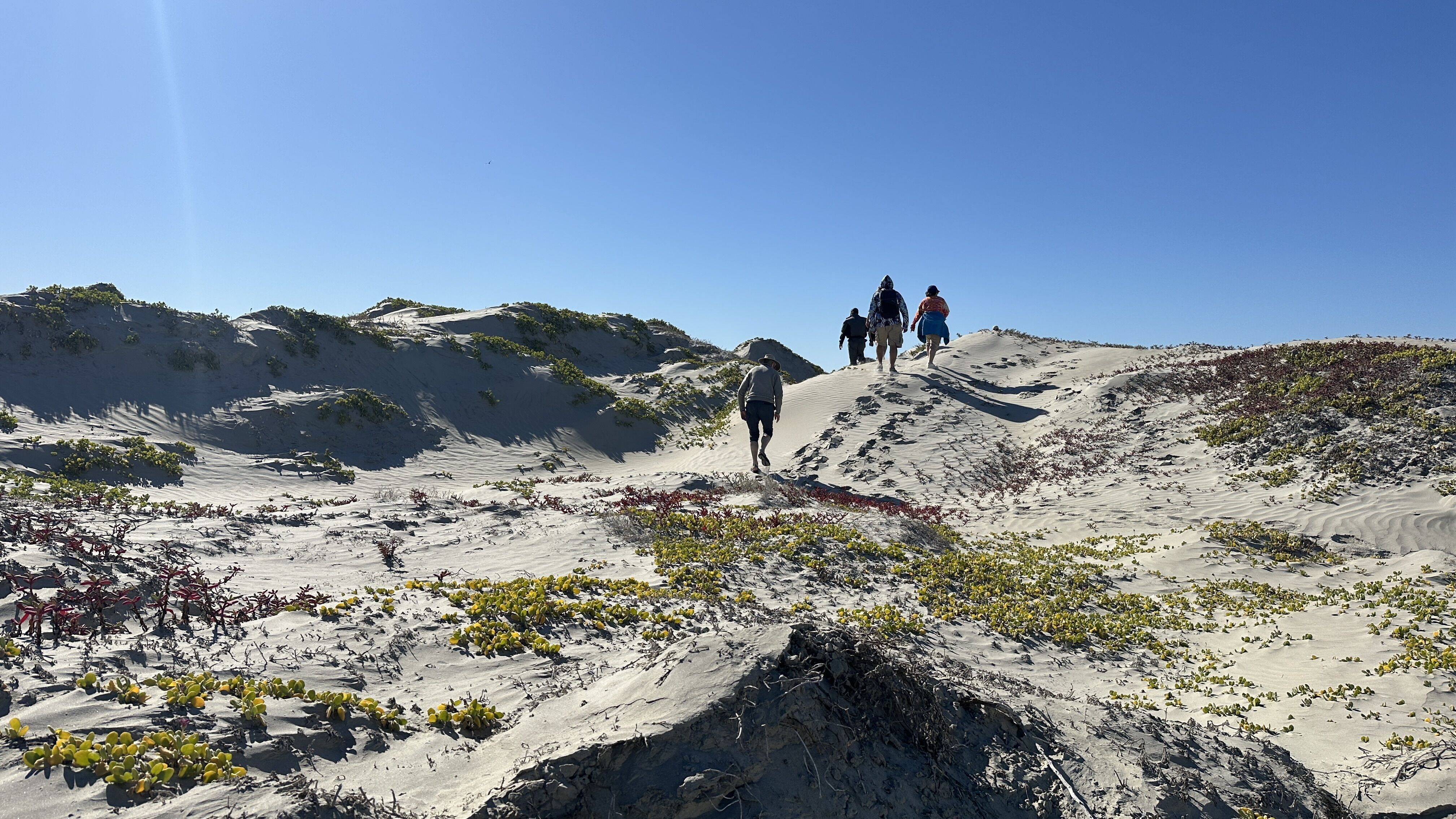 The day began with an exhilarating stretch class just after sunrise. Gray whales were spotted on our way south and guests enjoyed the early morning at the bow looking at whales, dolphins, and a couple of curious sea lions. Essentially, we saw whales all the way to the mouth of Bahia Almejas.