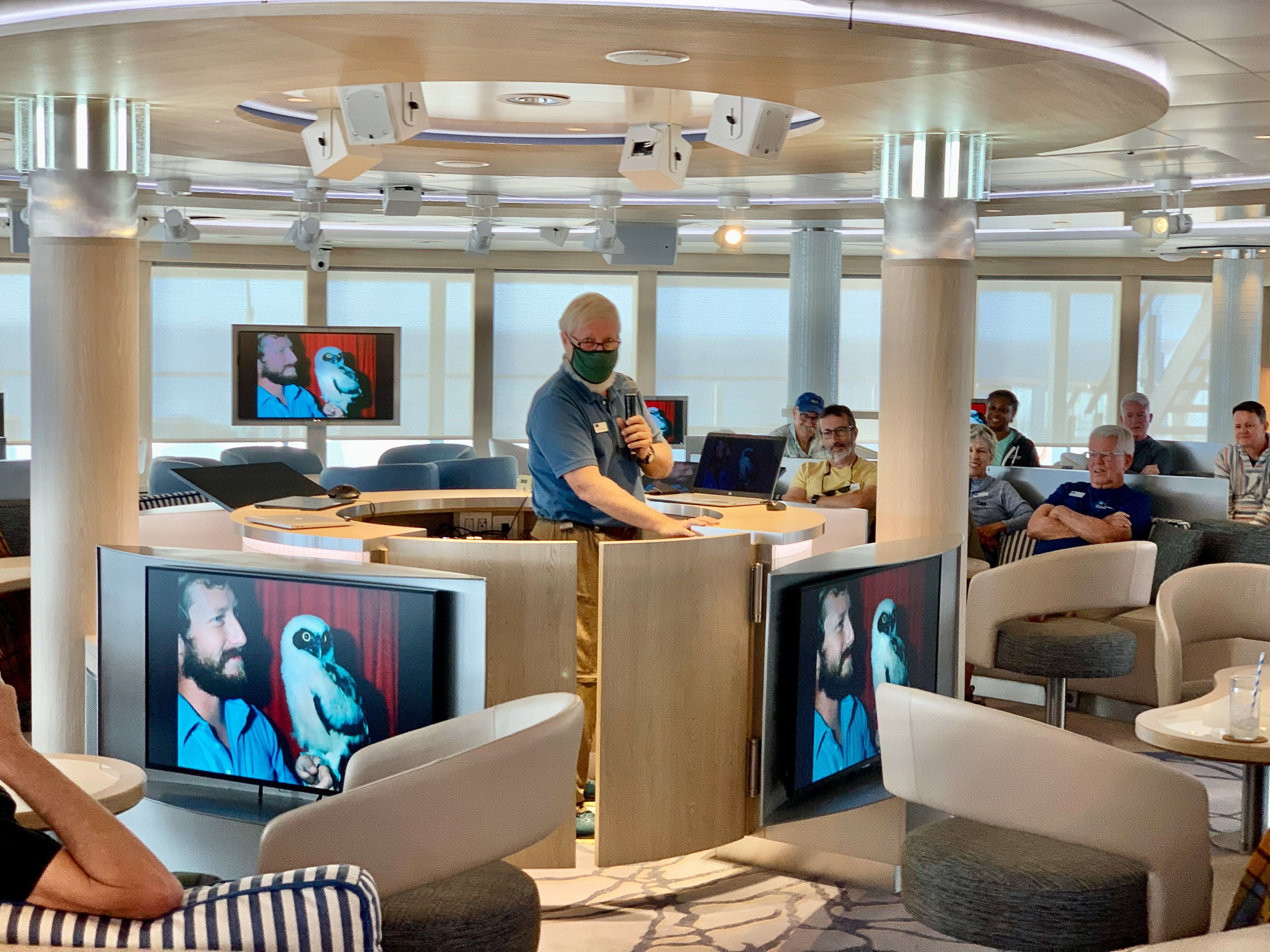 During lunch, we navigated towards Chinese Hat, a few miles away from Bartolome and next to Santiago Island. We observed the iconic Galapagos penguins basking on lava rocks. We also had one of the most magnificent snorkeling activities of the week, followed by a Zodiac ride. Guests had the chance to appreciate the outstanding landscape and wildlife of this place. We ended our day with a delicious barbeque dinner on National Geographic Endeavour II.