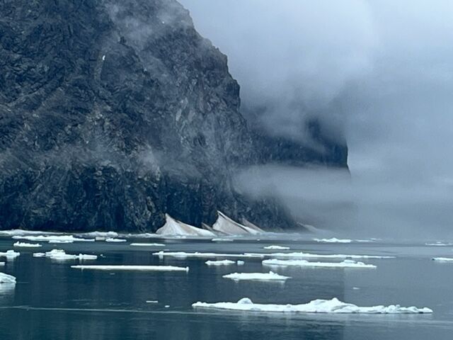 We disembarked early in the morning to walk up a wooden staircase to the top of Bartolome. The view was breathtaking. Along the trail we observed craters and lava flows, and some pioneer plants growing on barren lava. Back at the shoreline, we found a few Galapagos penguins feeding on sardines as we headed back to the ship for our own breakfast.
