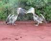 Above the penguin groups, the brown skuas circled hopefully, waiting to grab a momentarily uncovered incubating egg. A skua pair seized their moment and lifted an egg and dropped it on a spot just outside the group. They seemed to have some difficulty breaking into the egg and expressed agitation when a third skua swooped in to give the egg-cracking a try. Finally, the pair succeeded in getting to their meal.