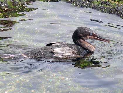 On the water, kayakers explored the stream up to its cascading waterfall, then branched out and paddled along the shoreline across the bay from our landing site. A slight wind and sprinkle accompanied earlier paddlers, but passed through to leave us once again with calm waters, and also a bit of blue sky poking through the shifting layers of high clouds. While we were exploring the waters above, our undersea specialist and purser went exploring below and brought us video and still photos. How surprising to see the rich and colorful marine world, including huge white plumose anemones, sailfin sculpin fish, and two—TWO!—giant Pacific octopus. Wow! One of these octopuses was in her home in a rocky crevice where she’s been seen many times, and on closer inspection a giant sac of eggs was illuminated. Apparently she will stay to protect her eggs until they hatch, not leaving even to eat, and consequently die of starvation at the end of the season. Seems sad to contemplate, though perhaps no sadder than any of our demise. The other octopus, smaller, was out in the open. This photo was taken from the video footage.