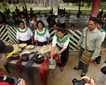 Following our trishaw rides, we had ample free time to explore a local market on foot. We fully immersed ourselves in the local culture as we meandered through stalls lined with fresh produce, meats and seafood. The colors, faces and action were a photographer’s dream. Dotted throughout the stalls were small cafes where the wonderful smell of local meals permeated the air. From the market, we once again boarded the longboats to visit a floating fish farm. Owners and workers welcomed us and explained how they catch, raise, feed and sell the fish to make a living.