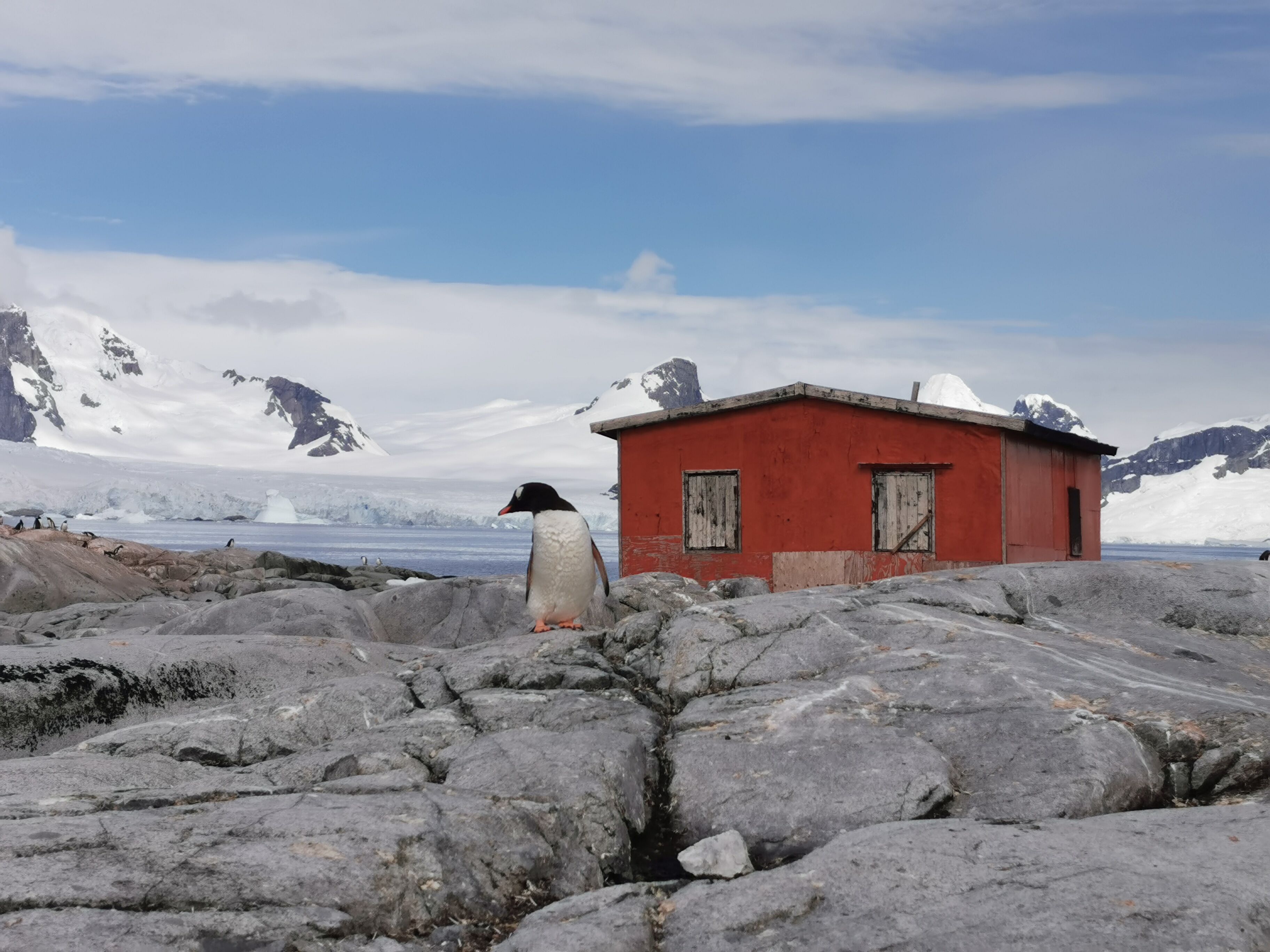 In the morning, the ship parked near a bird cliff in spectacular Paradise Bay. Here, Zodiac cruises were offered to guests. Magnificent icebergs and rich wildlife awaited us. At the cliff, guests enjoyed viewing blue-eyed shag chicks, grown to the size of adults. Some flapped their wings on the cliff in anticipation of their first flight, while others awkwardly flew down to the water, experiencing it for the first time in their lives. Cheerful Antarctic terns flew around us, periodically plunging into the water before reappearing with a tiny fish or even a krill in their beaks. On small icebergs, crabeater seals and leopard seals rested. Gentoo penguins porpoised and swam in the water around our Zodiacs. Humpbacks were seen in the distance. After lunch, we sailed across the famous Lemaire Channel. It was full of large and small icebergs, and our captain moved us through this magnificent landscape. In the late afternoon, we came to Petermann Island. We made a landing and enjoyed Zodiac cruising. Two species of penguins – gentoos and Adelies – have nesting colonies on this island.