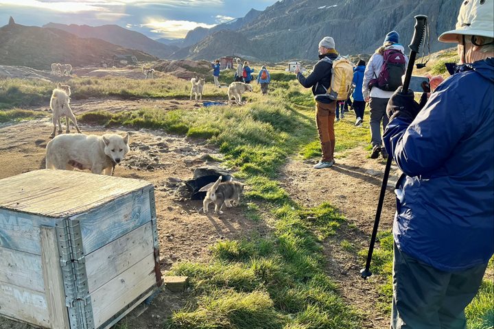 “At 6:15 this morning, I was debating whether or not to push the button to make an announcement and wake everyone up,” Expedition Leader Andreas said at recap this evening. “At 6:20, I pushed that button.” While this might not be met with cheers on an average day back home, today’s call was more than worth it as National Geographic Endurance left the Denmark Strait and entered her first day of a long voyage around Greenland. We were greeted with remarkably calm seas and stunning early morning light – a luxury as the high Arctic slowly shifts from its 24 hours of summer sun back towards the twilight (and nightfall!) of autumn. The sheer walls of East Greenland’s glacier-carved fjords rose to meet us, icebergs dotting the water at their feet. Amongst the icebergs, we spotted the reason for the early call: a group of twenty or more humpback whales feeding close by. We cut our own breakfast short for an early Zodiac ride to view the spectacle! The afternoon saw the ship navigating uncharted waters towards the former U.S. military airstrip Bluie East Two, where we enjoyed exploring remnants of the base and spotting late summer Arctic wildflowers while soaking in a beautiful first day in Greenland.