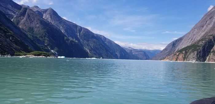 We began our daily expedition by riding Zodiacs to Dawes Glacier. There, we saw several harbor seals, numerous massive waterfalls, more picturesque fjords, and of course, the breathtaking edge of Dawes Glacier amidst hundreds of floating ice chunks of various sizes and shapes. Dawes Glacier is a tidewater glacier, meaning that it ends in the water. A section of this glacier was high above in the fjords, almost falling off into a U-shaped valley below, thus given the name a hanging glacier. As if the incredible scenery wasn’t enough, we also witnessed some calving, and a huge iceberg split in half, rolling around causing huge waves!