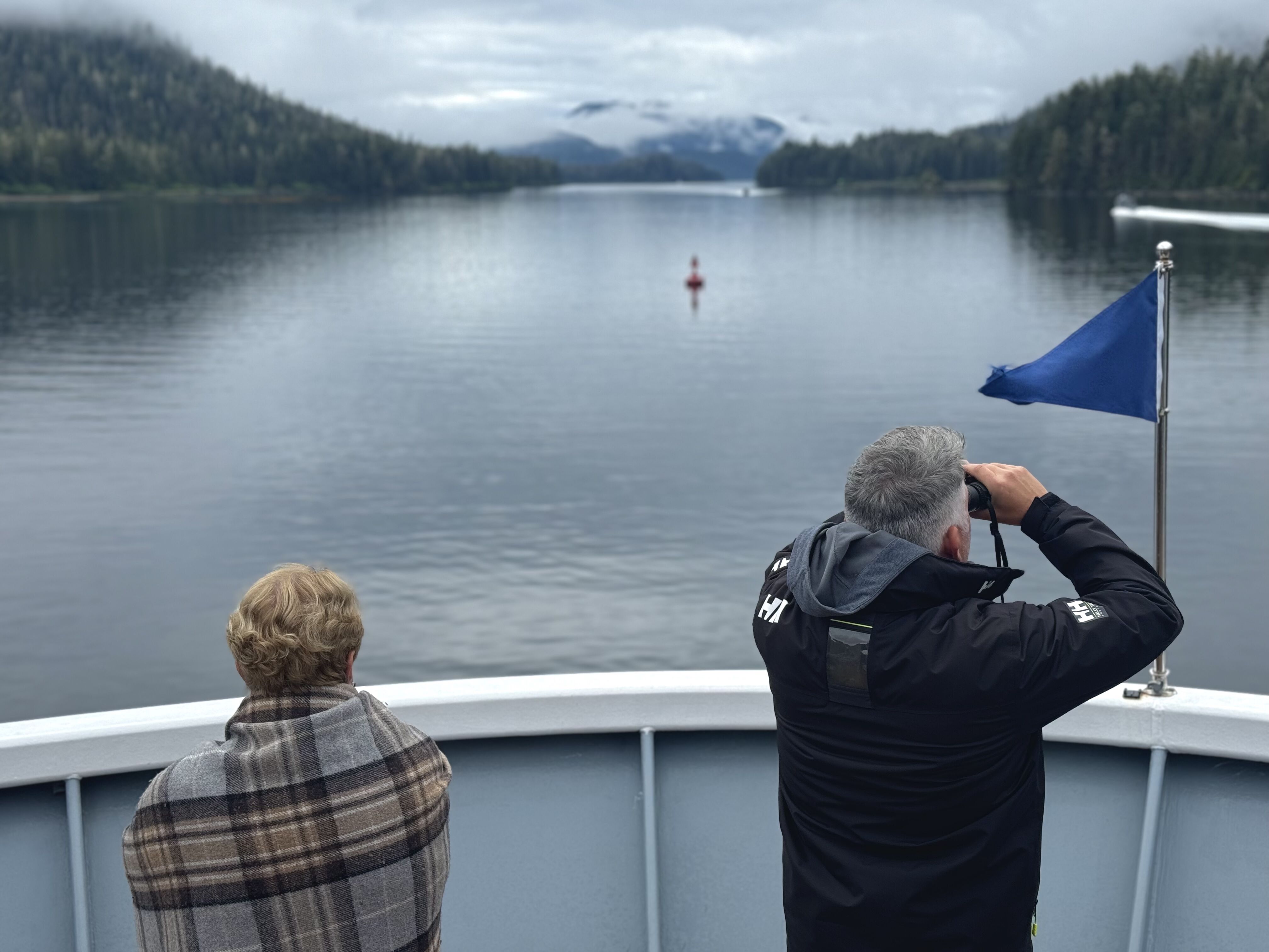 While cruising out of Endicott Arm this afternoon, we spent time at the ship’s bow searching for wildlife and were rewarded with viewings of humpback whales, bears, and bald eagles. Finally in the evening, we gathered for a National Geographic-Lindblad Expeditions tradition: a daily recap of the day’s highlights presented by our naturalists. Finally, we enjoyed a great dinner, sharing stories about our day’s adventures.