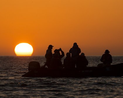 By midday we were already navigating northbound towards Punta Vicente Roca, on Isabela Island. With tall cliffs and an abrupt coastline, the place is majestic. This coast is surrounded by highly productive waters, and therefore species like the marine iguanas and the Galapagos fur sea lions can be found here in relatively healthy numbers. We started early in the afternoon by snorkeling with Pacific green sea turtles. They prefer a small bay of calm waters where they can either rest at the bottom or feed on the abundant seaweed. Many snorkelers had a close encounter with some Galapagos penguins as well as some flightless cormorants while in the water. We returned later to explore the area by Zodiac, and we could also find various other sea bird species here like the Nazca boobies, magnificent frigates, brown noddies, and Galapagos shearwaters. Back on board we celebrated our crossing of the Equator line with a drink in hand and a gorgeous sunset. A wonderful day had come to an end… we can’t wait for more of the magic of the Enchanted Isles.