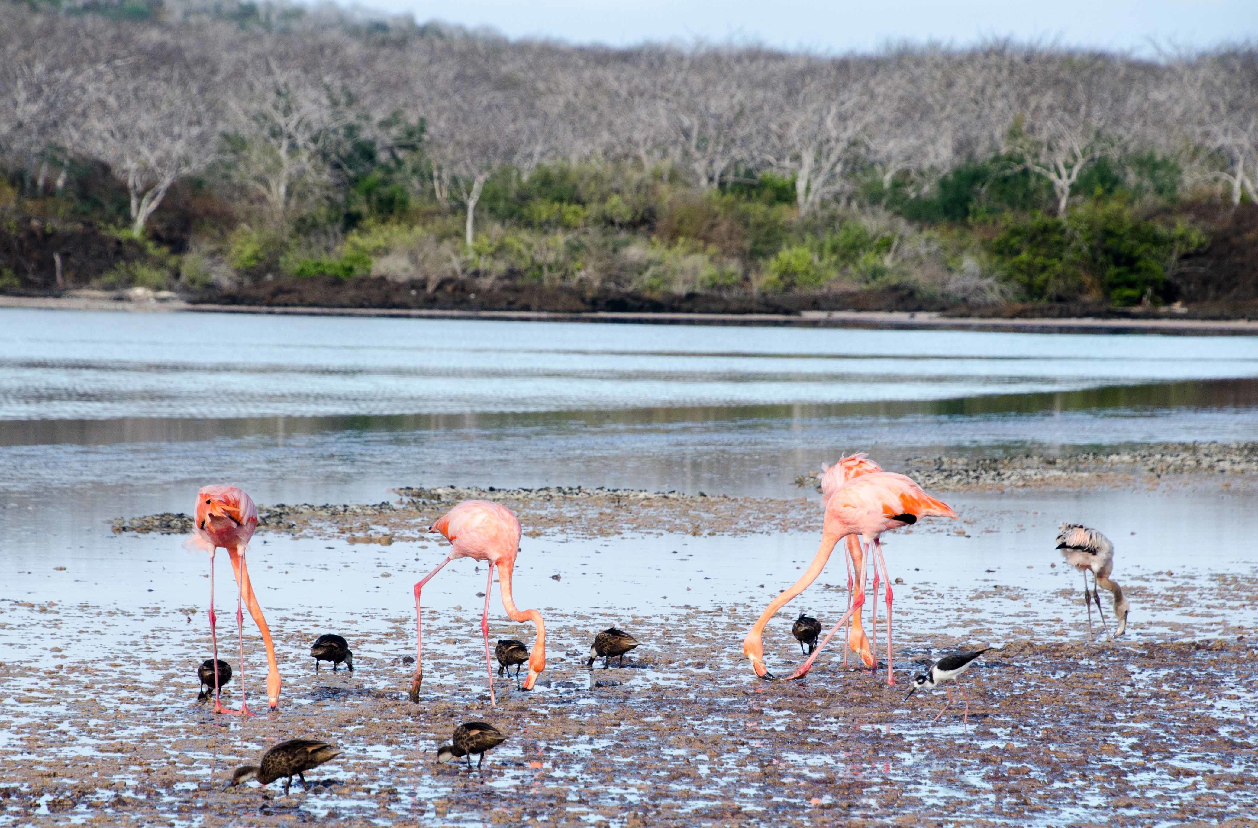 We spent the day at Floreana Island, once known as the “island of the thousand volcanoes,” due to its high concentration of parasitic cones. We landed before breakfast at Punta Cormorant. Here we enjoyed a leisure walk and observed greater flamingos and blue-footed boobies.