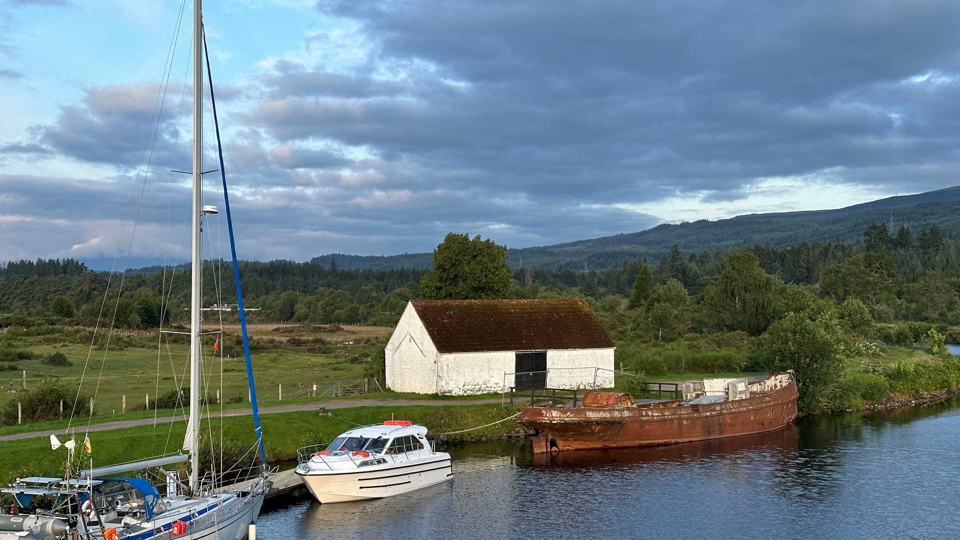 There seems to be an order to the morning in a small Scottish town. Back home, the crow of a rooster might rouse one from a deep and comfortable slumber. Here in Fort Augustus, Scotland, the wood pigeon’s mournful call is the first sound of the day. Dainty common gulls respond, screaming as they circle the canal, perhaps in search of last night’s spoils. Lumps on the grassy verges morph into quacking mallards which rise as one and waddle toward the water. Silent rabbits are the next to stir as they hop from their burrows. We are somewhat slower. It is a vacation, after all, and there is no need to rise this morning until the lock keeper does the same, for our progress is determined by a series of steps to a lower water level.