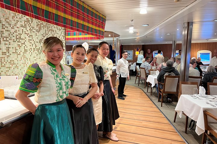 We were incredibly fortunate to have exceptionally calm and sunny weather for our second day in South Georgia. Just minutes after sunrise, a group of us were onshore and hiking in the footsteps of Shackleton towards Stromness. Another party visited the Fortuna king penguin colony. Over lunch we sailed through a veritable ice sculpture exhibit with hundreds of icebergs stranded along the coast of South Georgia, set against the Allardyce Range in all its glory: razor sharp snowy peaks flanked by glaciers. The afternoon was spent exploring the Grytviken whaling station museum and kayaking around the bay. We ended the day with an endorphin-pumping polar plunge.
