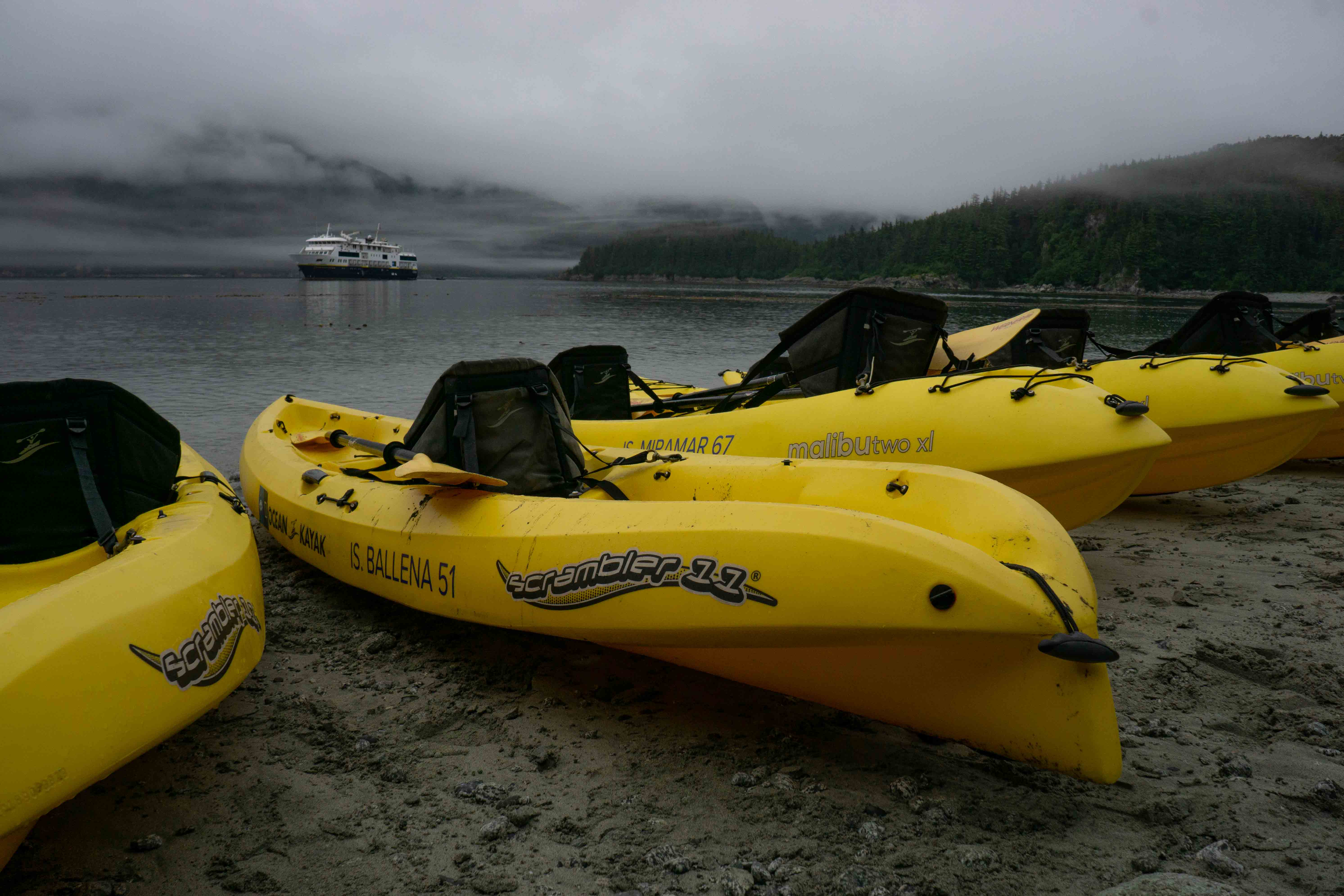 Today was an amazing day of adventure in Southeast Alaska. The day started with dense fog enshrouding National Geographic Sea Bird. As the fog lifted, we headed out for our first activities of the day. We anchored between Fox Creek and the Shaw Islands. From here, we sent our landing craft in both directions, to hike and kayak.