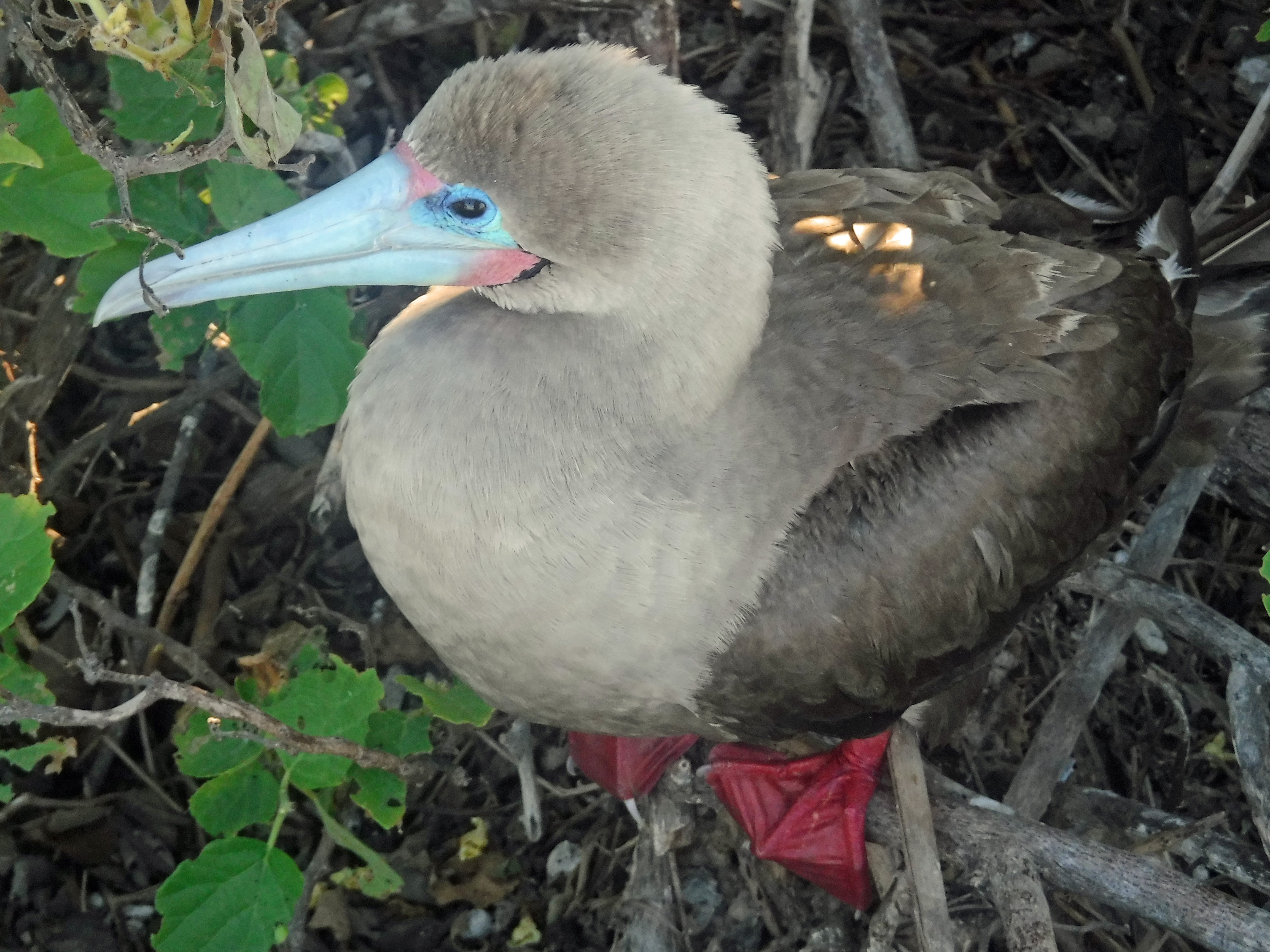 The white coralline beach and the red mangroves are the nesting place for red footed boobies. Minor frigate bird males are beginning with the mating ritual again today; a few bachelors are displaying their half inflated pouches to females that don’t seem to be particularly interested in them yet!