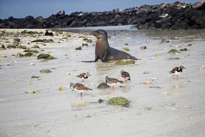 Sea lions resting on the sand or just being active for fun is another high point of the afternoon. Snorkeling offers wonderful encounters with a wide variety of fish and marine mammals like sea lions and fur seals.