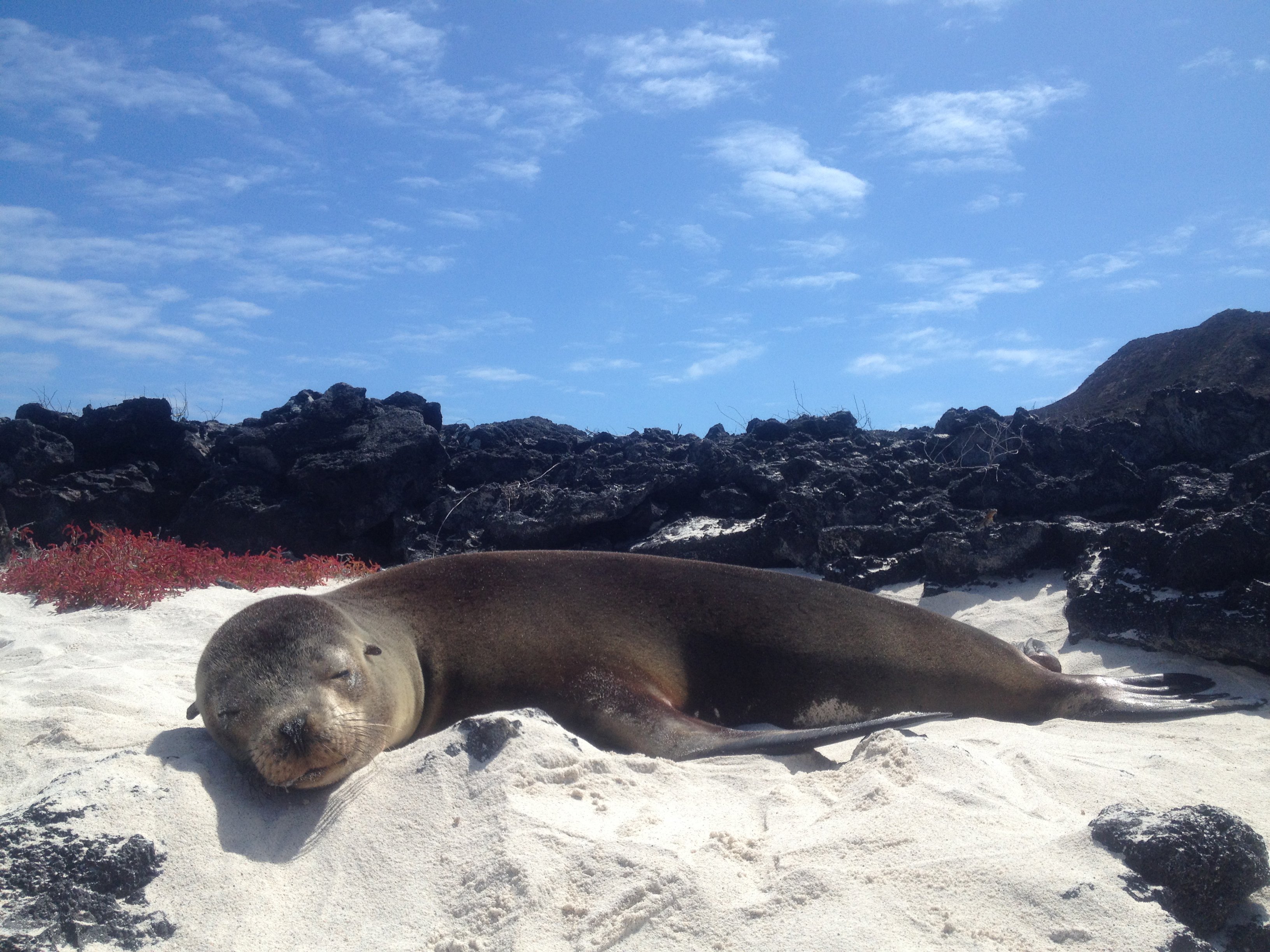 Emerging from the Palo Santo trees we came upon an open volcanic landscape devoid of vegetation that sloped gently down to the sea. The trail followed along the top of a volcanic fissure, the perfect hiding place for the short-earl owls. The sky was filled with Galápagos storm petrels, the favorite meal for the owls. Certainly, they must be here.