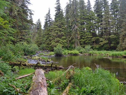 The late afternoon found us back in the expedition landing craft for an adventure in the waters around the Inian Islands. There we were entertained by so much wildlife it was hard to know where to look! The sea lions were abundant and noisy. One lucky group spotted a mother sea otter with a baby and they were extremely tolerant of our boat filled with paparazzi. The green trees were spotted with the cotton ball heads of bald eagles. Other birds made cameos as well—puffins, gulls, pigeon guillemots, and cormorants just to name a few. And our friends, the humpback whales, made an encore appearance as well—flukes, flippers, and huge gaping mouths lunge feeding…BRAVO!