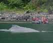 Tidal Inlet was our next destination, after a wonderful park introduction by Victoria and Marylou. Inside the narrow arm, there were hundreds of surf scoters in rafts, all around our ship. We intended to stop by Gloomy Knob, a large, gray, mountainous rock but were happily deterred by the discovery of a gray wolf on the beach! This particular wolf was turning over boulders and searching for edible delicacies underneath. Feeling lucky to be able to watch such an elusive animal, we continued toward Russell Cut, the passage inside of Russell Island. This beach proved to be even more productive than the last, as we witnessed a black wolf, chased by (and also in pursuit of!) gulls and Arctic terns. Undoubtedly the most impressive moment of the day came when the wolf abruptly turned and caught and killed a bird in flight. It was an incredible sight to see and a great example of the animal’s intelligence and speed.