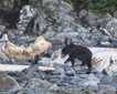 On our return journey, we had a brief view of a brown (grizzly) bear walking along the shoreline, and later we were fortunate to see a black wolf! It was fun to watch this canid hunting - pouncing and munching, probably on small rodents. Then at Gloomy Knob we observed several mountain goats grazing on the hillside wearing thick furry coats, ready for winter.