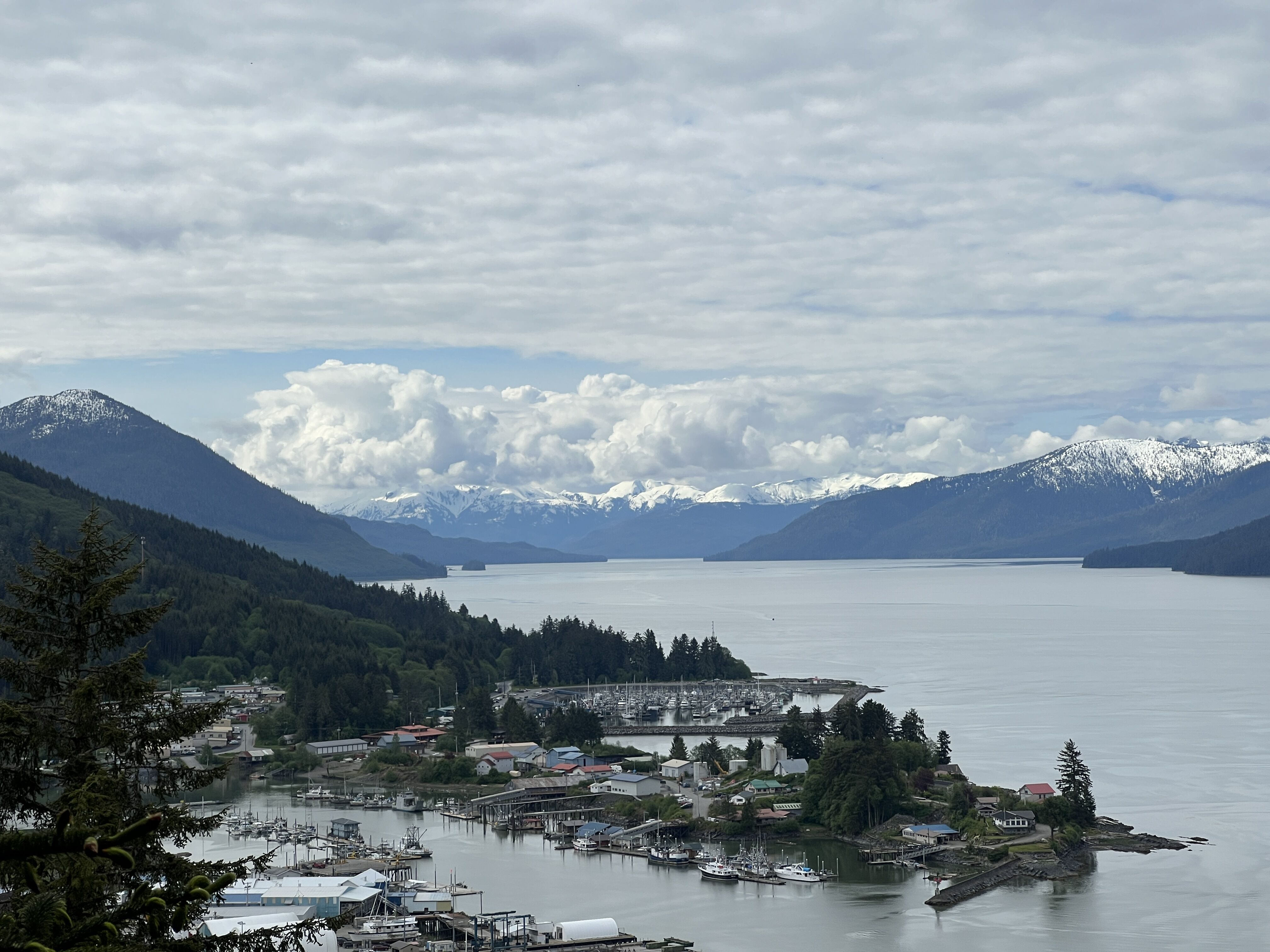 The clear skies encouraged us to admire the scenery and scout wildlife from the bow. In the afternoon, multiple humpback whales appeared as we cruised a narrow cut, and one breached multiple times. We passed an area called Gloomy Nob where we spotted the teensiest mountain goat many of us have ever seen, probably no older than a few days. A look to the left, and we saw two napping brown bears, arguably enjoying the sunshine more than us. Farther down, we arrived at South Marble Island, home to Steller sea lions, cormorants, gulls, and charismatic tufted puffins.