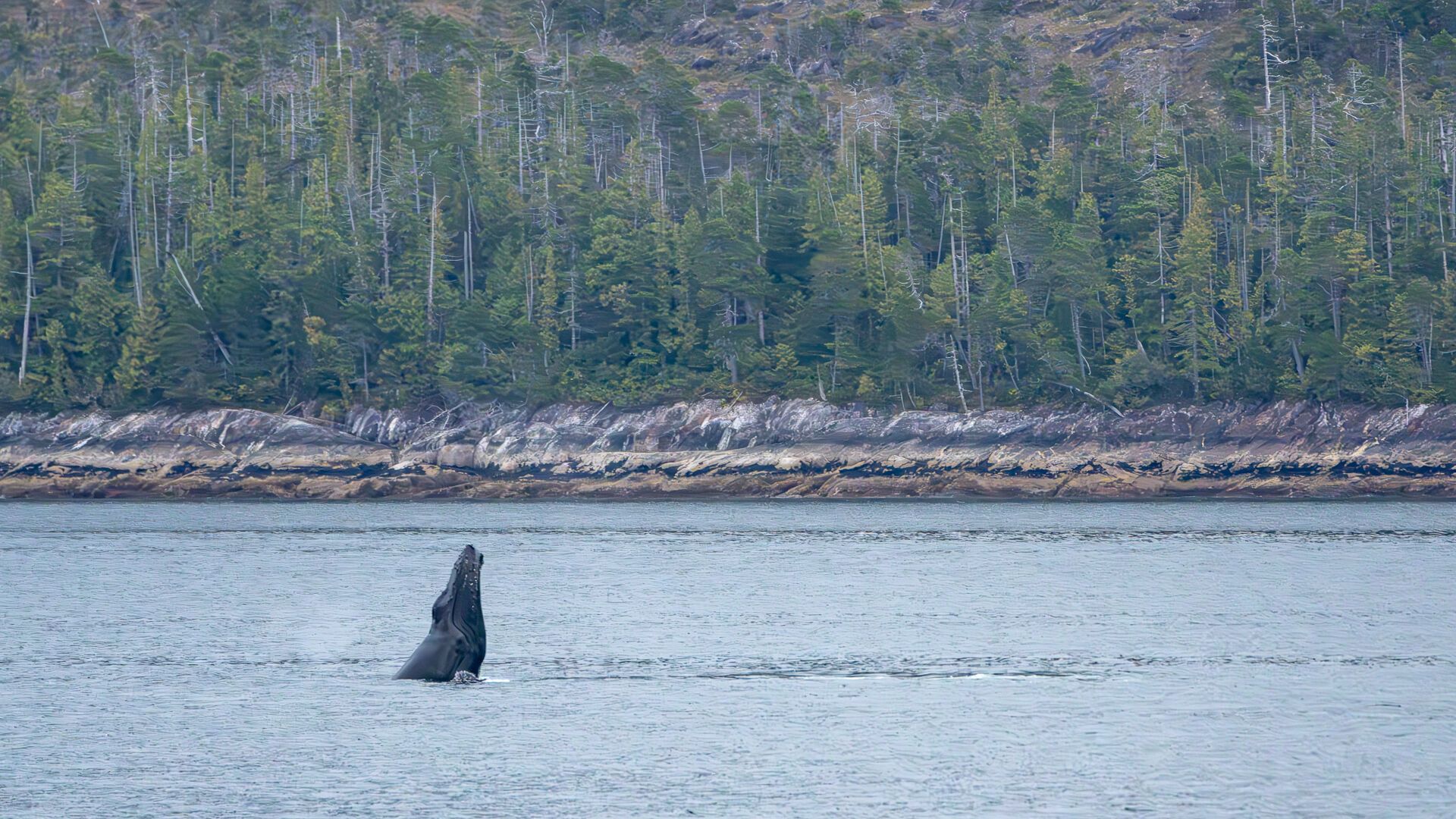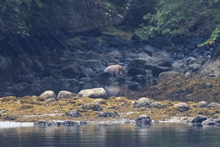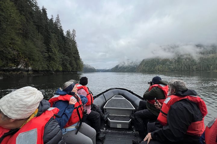 Our last day in the Great Bear Rainforest proved to be one full of excitement, education, and awe. After dropping anchor in the idyllic glacial fjord of Green Inlet, we set out to explore the rocky shoreline and forested granitic fjord walls. The dense fog gradually turned into a wispy mist, which exposed different peaks and valleys of the forest as it moved through.