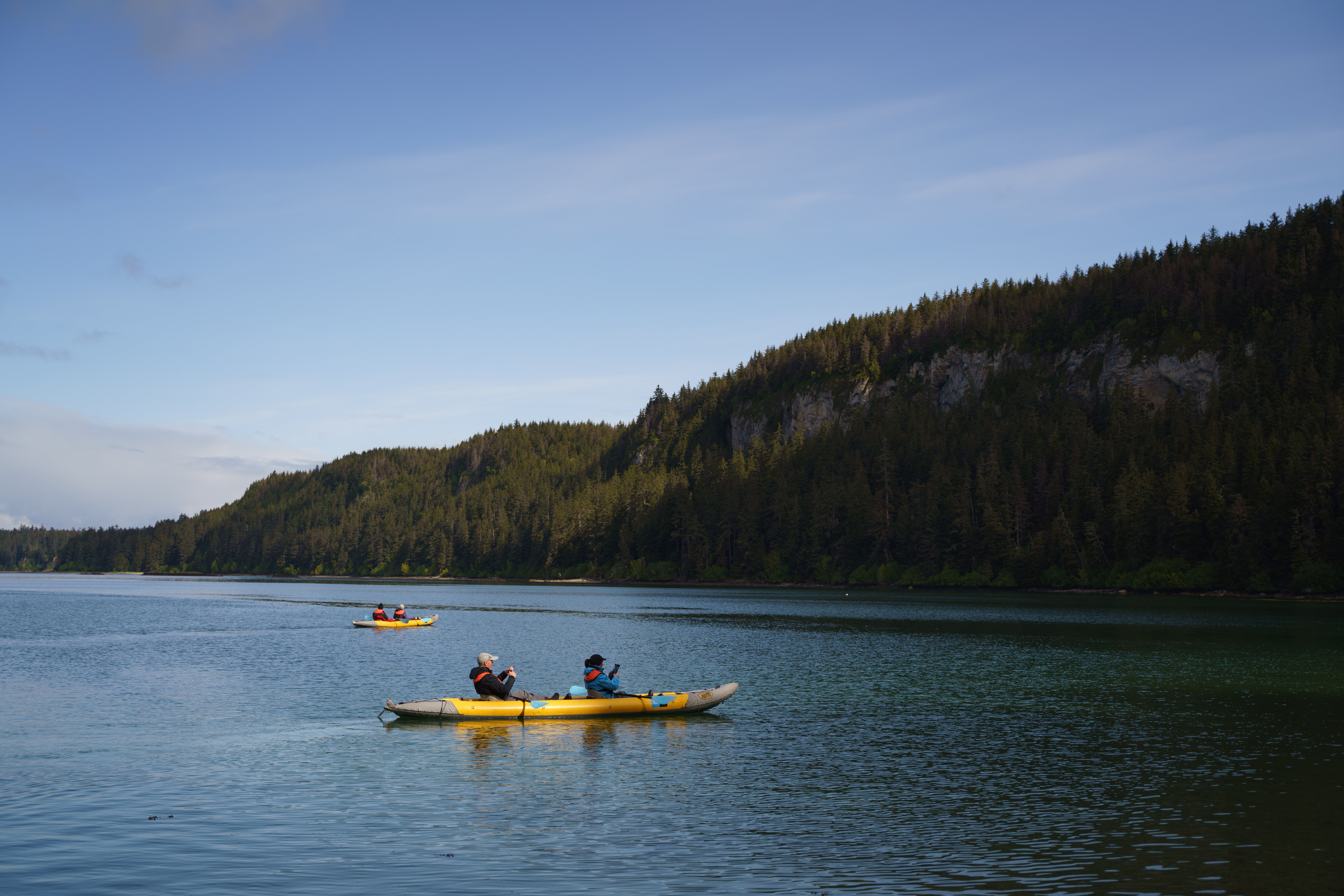 Situated in an open, grassy meadow, this incredibly picturesque community is framed by snow and ice-covered peaks in the distance, healthy pine and birch forests, near and distant waterfalls, and the life-supporting ocean. Nearly all of our guests set out on hikes of various lengths. One hardy group of hikers set their sights on the higher, snowy alpine plateau above the sheeting waterfalls. The majority of our shipmates chose the middle of the road excursion, slowly winding their way along the raging meltwater stream formed by the cascades. Lastly, a smaller set chose a more casual stroll along a similar path. They took a bit more time for natural history, birdwatching, and photography. Without a doubt, the scene came alive with the spectacle of life-giving water surging down from the rugged alpine landscape. This was the highlight of our morning as warm southerly winds and Arctic spring sunshine surrounded us.