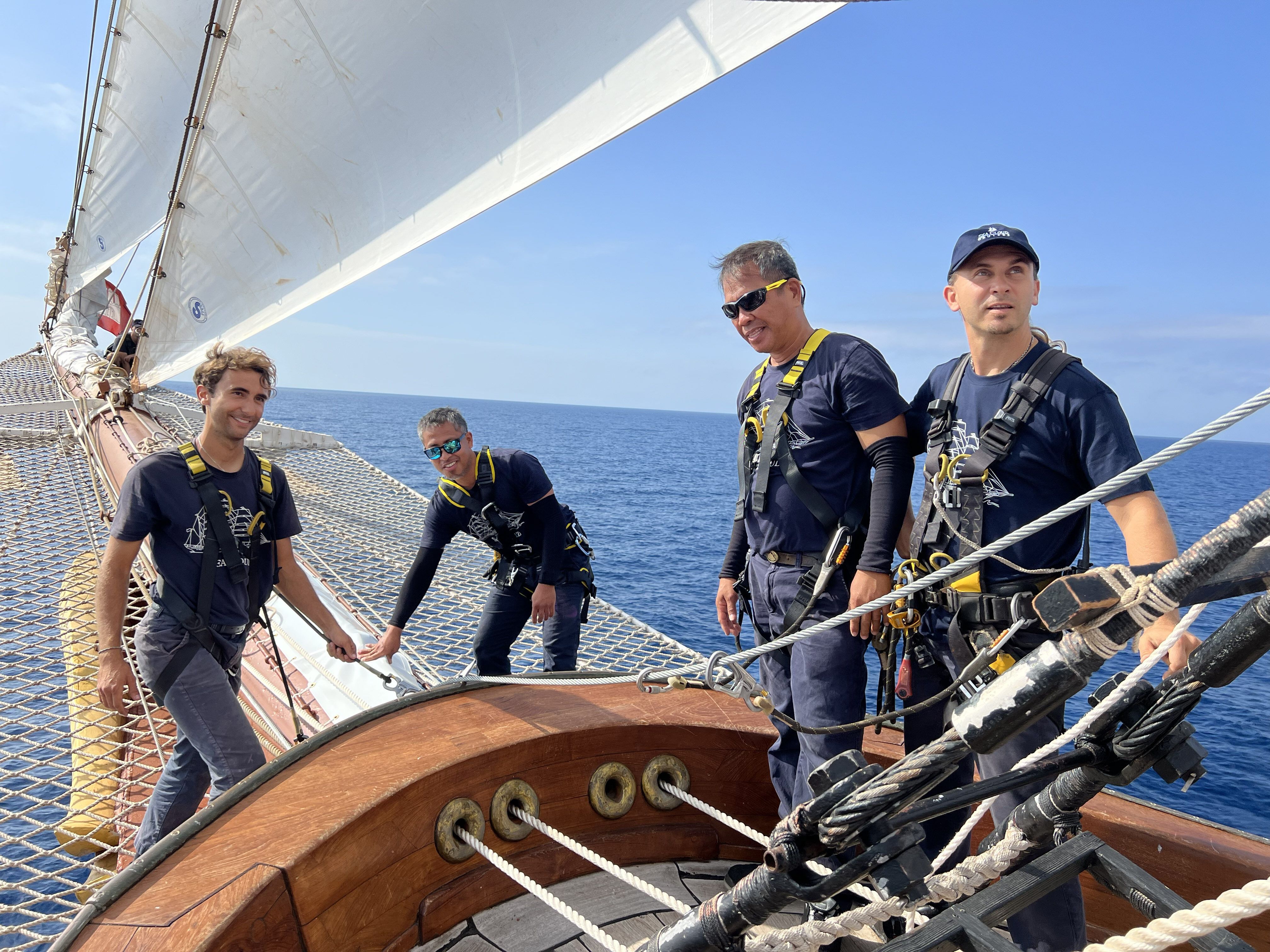 The captain and crew of Sea Cloud really started the voyage with a bang as they raised all the sails so we could see the magnificence of this 4-masted bark. Captain John Svendsen explained exactly what was going on as the sailors scaled the masts to unfurl the sails.