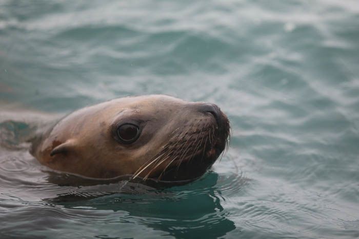 Waves and upwelling water at the Inian Islands took everyone for quite a ride this morning! All of the wildlife were feasting and taking advantage of the ripping currents. We saw diving birds, sea otters crunching on crabs, Stellar sea lions thrashing salmon into bits, and humpbacks surfacing all around. The afternoon brought more mist and smiles as hikers explored Fox Creek and kayakers cruised the coastline.