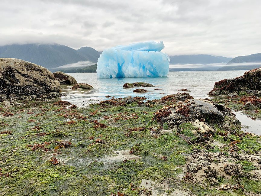 National Geographic Sea Bird sailed through Icy Straits in early morning surrounded by a thick fog. As we anchored in the Inian Islands, we could hear humpback whales breathing somewhere out in the fog. Nearer to the ship, we saw sea otters floating by lazily. After a hearty breakfast, we boarded expedition landing crafts for a cruise around the Inian Islands.