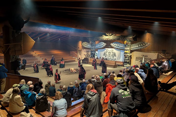 Billowing wisps of fog ribboned their way among the drooping bows of Sitka spruce as our ship cut through Johnstone Straight. Uncle Jim showed us many of his priceless treasures. Marveled by the craftsmanship of cedar spoons and intricate beadwork, the highlight was the opportunity to lay hands on a Chilkoot blanket, only ever seen behind protective panes of glass. The rain showers slowed as the gangway was lowered, and we took to the streets of Alert Bay. On foot or by bus, we made our way to U’mista Cultural Center. Enriching artifacts lined the walls for us to see, while outside we heard tales from a master carver and got to witness the artist in his element. A truly unique experience awaited us in the big house. Dancers in well-detailed regalia stomped and twisted in concert while the white smoke wisps weaved in the spaces between us and a nearly forgotten culture. The tribe invited us down for one last dance, and as we walked out the doors of the big house, wonder and joy reflected on our smiling faces.
