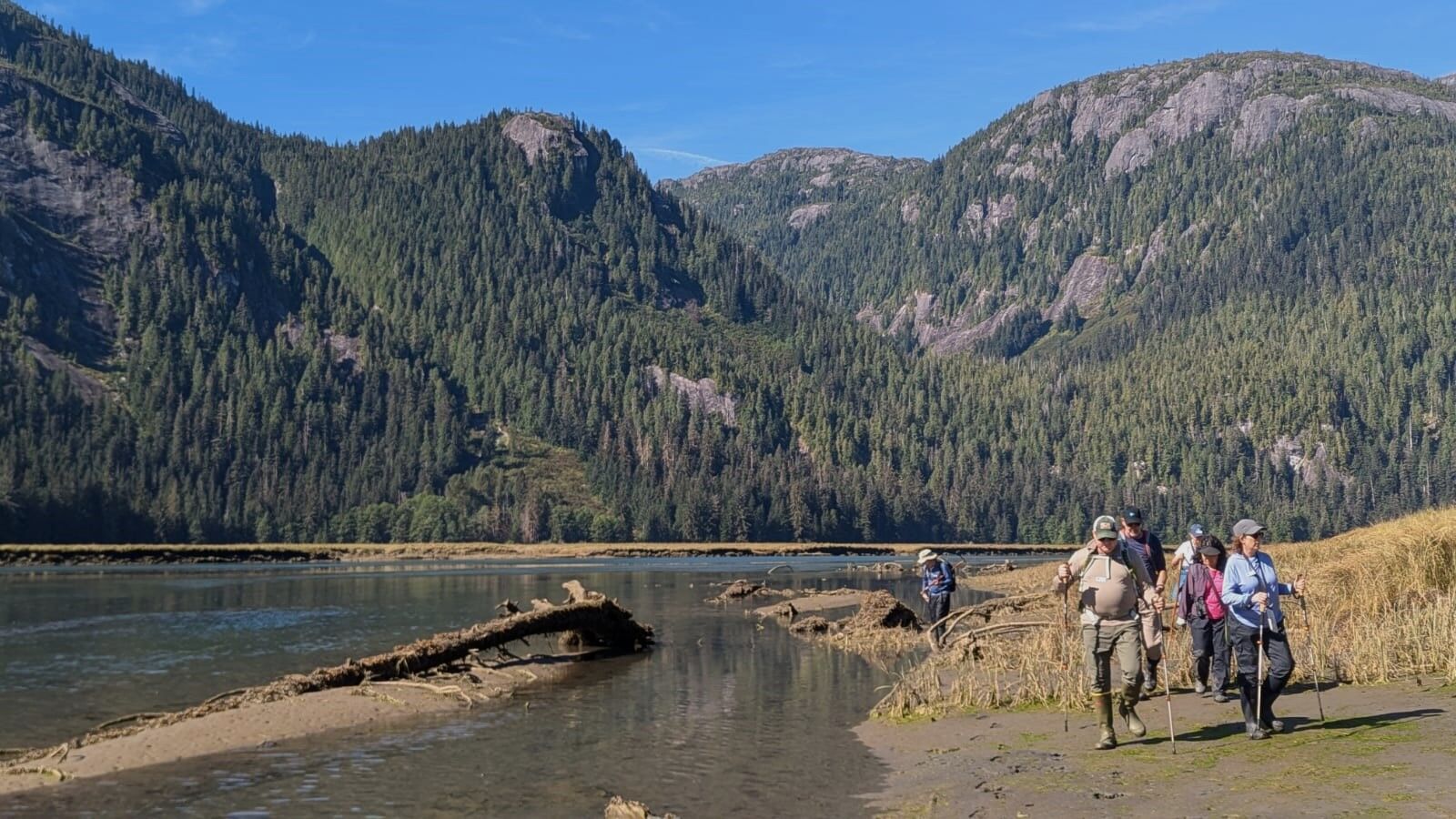 Under radiant blue skies and with the stunning backdrop of the Coast Mountains, guests aboard National Geographic Quest enjoyed a spectacular day in Petersburg, Alaska. Known as “the town that fish built,” Petersburg welcomed the ship with warmth and charm. Guests explored by Zodiac through the bustling marina, biked scenic roads around Mitkof Island, and joined local guides for immersive hikes highlighting native traditions and deep connections to the land and wildlife. A particularly intrepid group of 17 guests tackled the challenging seven-hour hike up (and then back down) Petersburg Mountain, rewarded with sweeping views and a sense of triumph. The day ended in true Alaskan style, with a lively crab feast on board. Crew members served up the local delicacy while proudly donning t-shirts featuring the whimsical marine art of Southeast Alaska’s own Ray Troll. It was a day of sunshine, sweat, stories, and seafood—an unforgettable chapter in their Inside Passage adventure.