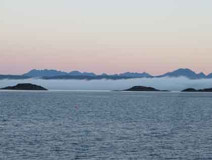 As the sun rose over the Knoydart mountains, Lord of the Glens sailed away from the mainland towards our morning destination of Eigg. An Sgurr, the “prow” that prominently marks Eigg, rose before us under cloudless skies. The clear, sunny day was a gift in this summer of rain and wind. We enjoyed sightings of gannets, guillemots, and even a minke whale (seen by just a few of our group) in the calm sea.