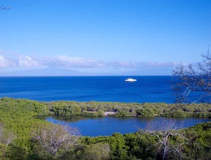 The excitement continues and today we were to spend a whole day in the largest island of the Galapagos archipelago. Isabela is located on the west, and is outlined by elegant shield volcanoes. Its high elevations and large size allow to various vegetation zones, and from the distance it looks a lot greener than any of the islands we have previously visited. We set foot at Urbina Bay. This coast was the scenario of some interesting volcanic events, where about 1.5 square kilometers were uplifted leaving marine creatures stranded and coral heads well away from the ocean. A circular trail took us into the denser vegetation, which is the perfect habitat to a colony of endemic land iguanas, very attractive with their yellow and orange colors. We continued further inland trying our luck to find the local inhabitants, the giant tortoises. We found a couple of young ones that were savvy enough to use the trail instead of getting tangled in the brush! The morning got warmer but our adventure in Urbina Bay continued, and we reached the coast where fantastic surf was breaking over the basaltic rocks! We kept along admiring this wonderful spectacle until we reached the landing beach. It was time to enjoy the waves and have leisurely fun at the beach, particularly for our younger explorers but for the grown-ups too!