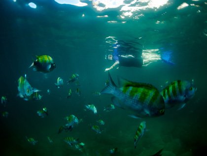 After an action-packed morning we repositioned east to Isla Santa Catalina, one of the Gulf’s most beautiful and unique islands. Under the watchful eye of the landing’s granite "elephante" we walked the arroyo inland amongst towering cardon cacti and the endemic giant barrel cactus. Scurrying desert iguanas, chuckwallas, and emerald green Santa Catalina side blotched lizards scurried from place to place and loggerhead shrikes looked for an easy next meal. But the highlight for the afternoon must be sighting the most unique snake of the region, a rattle-less rattlesnake. With no potential predators and no large mammals to be trampled by, this species has gradually lost its rattle, but not its venom. Although beautiful, it still demands respect.