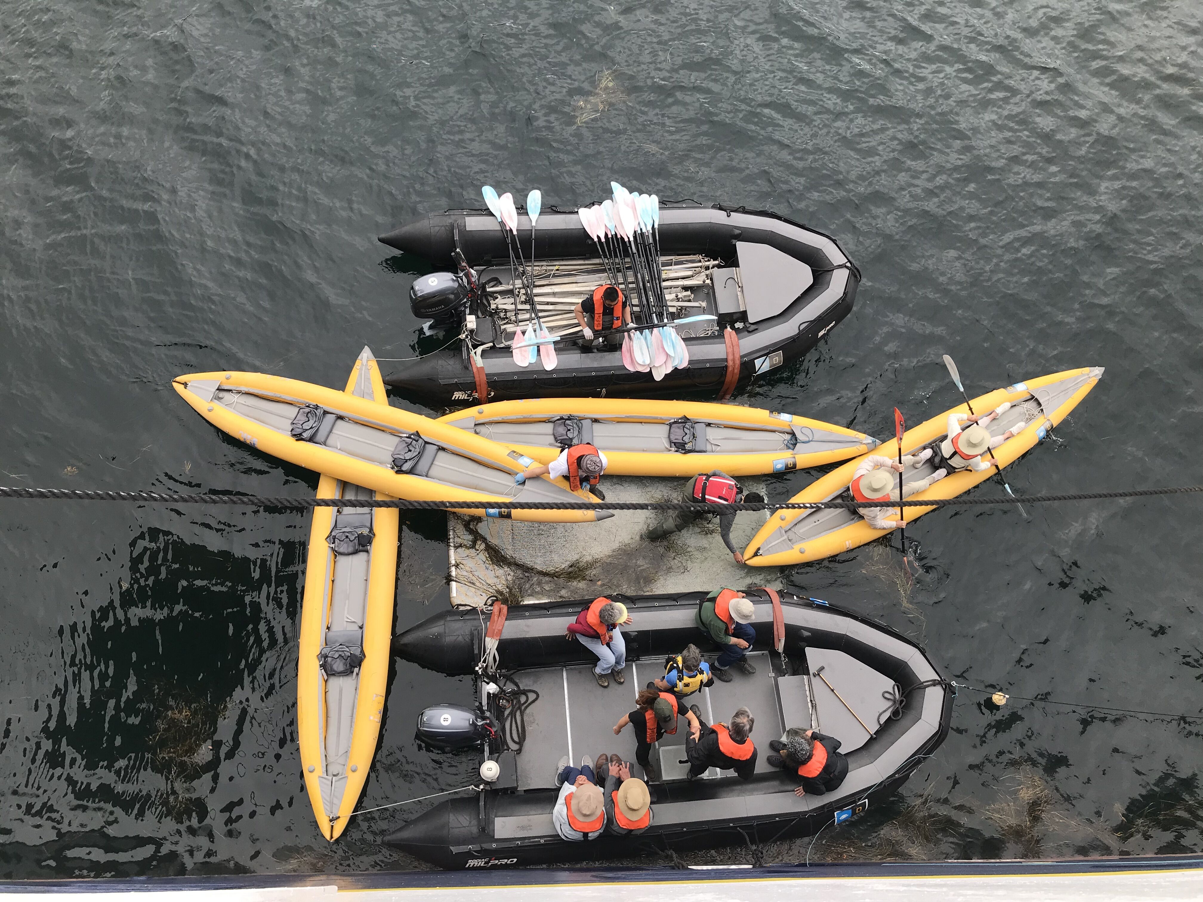 We visited a memorial to Jean-Baptiste Charcot, who lost his life in 1936 off the coast of Iceland. Previously, Charcot spent many years sailing around East Greenland. We observed a small bust of Ejnar Mikkelsen, the founder of the town. Towards the end of our visit, we saw a weather balloon fly up into the sky–the balloon is released twice every day. As we returned to the Zodiacs, we watched as a handler fed a group of Greenland working dogs.