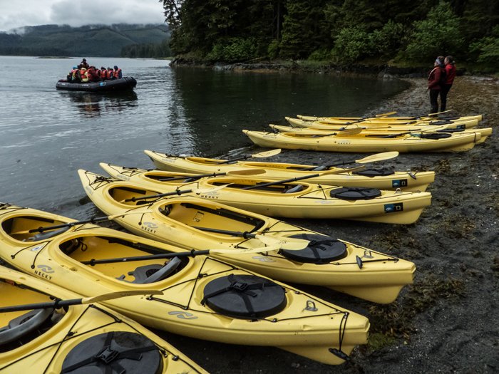 The water was so clear we could see the sea urchins, the moon jellyfish, the algae’s, the barnacles, and clams all on a very diverse intertidal ecosystem. We even got a visit from the umbrella Zodiac to freshen us up. Our galley team got us some great fruit juice and strawberry margaritas.