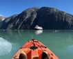 Today we woke up to our first sunny day in Southeast Alaska. We spent the morning exploring Pavlof Harbor, which is a great place for watching the salmon that just started running upstream in the Pavlof River. Some guests hiked to the waterfall for a relaxing morning on the tidelines, others paddled the harbor via kayak and stand-up paddleboard, while others toured the bay on Zodiac rides. After our action-packed morning, we headed out to Chatham Strait, where we cruised for wildlife, spotting harbor porpoises, seabirds, and humpback whales. We ended the day with cocktails on the bow and got one last showing of humpback whales that breached off the bow of National Geographic Venture as the golden hour began.