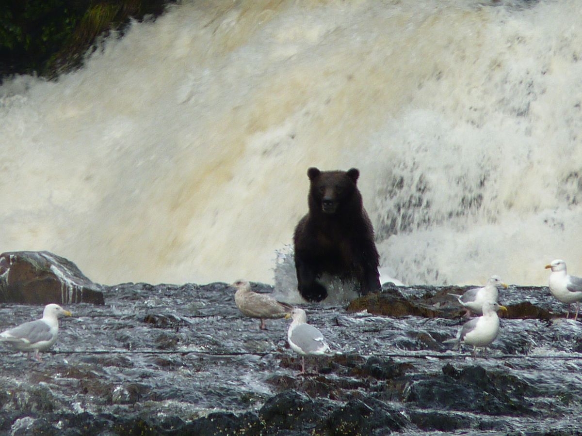 After a surprise visit by the wondrous Northern Lights, we began our final day viewing bears in the intertidal zone of Pavlof Harbor. While cruising south through Chatham Strait, we happened upon a large pod of humpback whales bubble-net feeding. Then, we finished off an already amazing day by hiking through a perfect example of temperate rainforest to Lake Eva. We couldn’t have asked for a better day to conclude our Wild Alaska Escape!