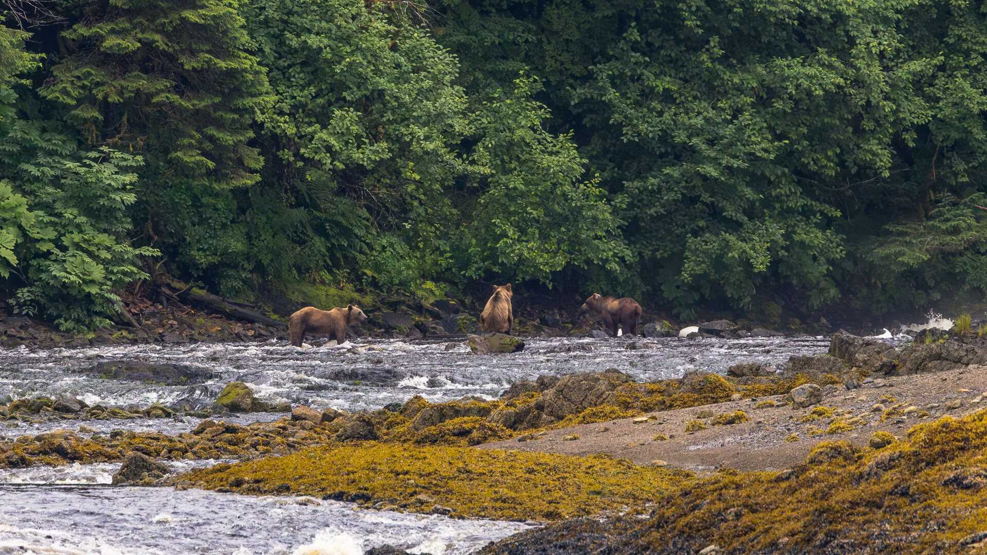 We arrived at Pavlov Harbor this morning with hopes of spotting brown bears at the stream in the bay. Sure enough, we spotted four adults and two cubs in the area, all waiting for the annual salmon run to begin so they could fill their bellies with much-needed protein and fat. We launched Zodiacs to make a safe and unobtrusive approach for viewing and photographing them.