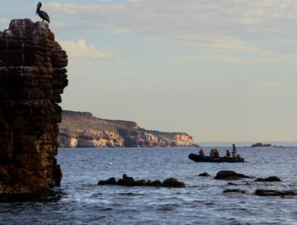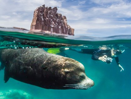 We cruised south to Los Islotes in the afternoon, an exciting place to observe and swim with California sea lions. These pinnipeds are habituated to boat traffic, and yearlings and sub-adults love to follow boats, porpoising out of the water, twisting and gyrating into aerial jumps that we watched with smiling faces. Snorkeling with them was even more fun. Like high-speed rockets they shot towards us, turning at the last instant as our eyes grew really large. At times they approached like love-starved puppies, slowly presenting their rumps as they looked over their shoulders, almost daring us to give them a scratch.