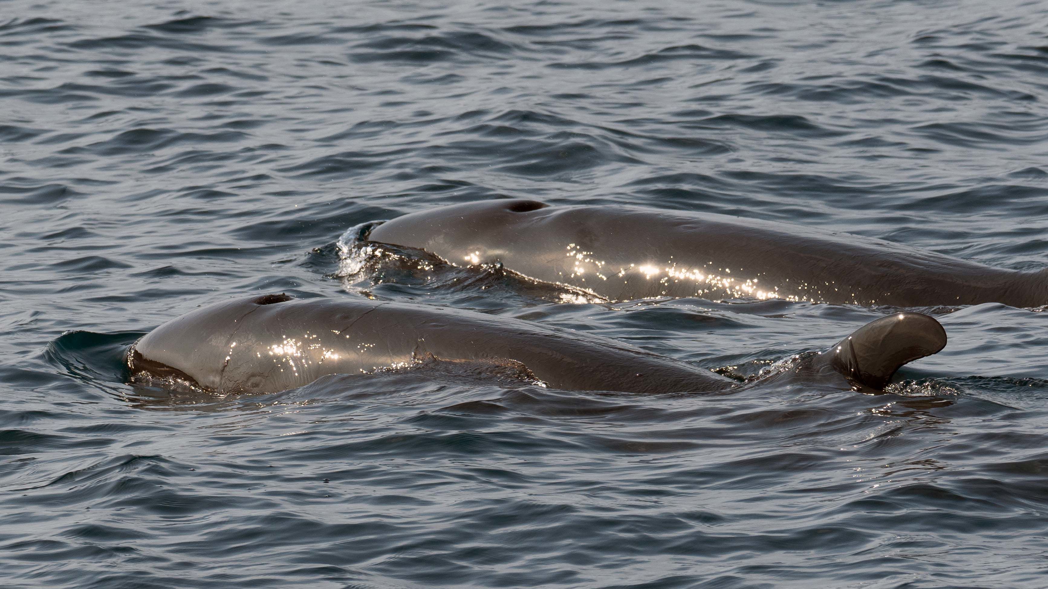 Shortly after, we observed a second dolphin species frolicking in the distance–common dolphins. The icing on the cake came just a few minutes later when we enjoyed a wonderful encounter with the rarely seen short-finned pilot whales. The whales swam placidly alongside National Geographic Islander. The sighting was so spectacular that most of the ship’s crewmembers joined our guests and natural history staff to observe. We were all so excited and joyful! What a magical event!