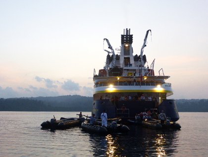 After two hours of cruising it was time to slowly go back to the ship for a proper breakfast out on deck. On our way home to the National Geographic Orion we passed a few local people on their boats, and all waved to us with the biggest smiles. Lovely to see!