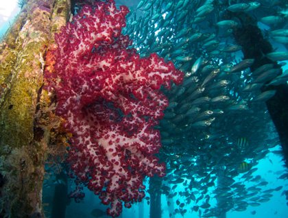 We were anchored off the Island Kri, another limestone island covered with lush tropical forest and an amazing fringe reef surrounding it. It was the best place we had seen so far… incredible diversity of healthy coral, beautiful colourful large and small reef fish and the icing on the cake was the sighting of hawksbill turtles, black tip reef sharks and some very large fish like the Giant Wrass. The visibility was incredible and the temperature of the water was very pleasant. Most of us were in the water for nearly two hours non-stop, as there was so much to see and to enjoy.