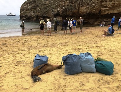 After lunch we went to explore then natural habitat of the giant tortoises. Here everybody had the chance to interact and photograph these magnificent reptiles in their natural habitat and learn about their natural history. It was a bit muddy so people had to wear rubber boots for the hike. After this amazing experience in the afternoon, we returned to town. Some guests decided to go back directly to the National Geographic Islander while others stayed later to enjoy the street-side cafés and shops of Puerto Ayora.