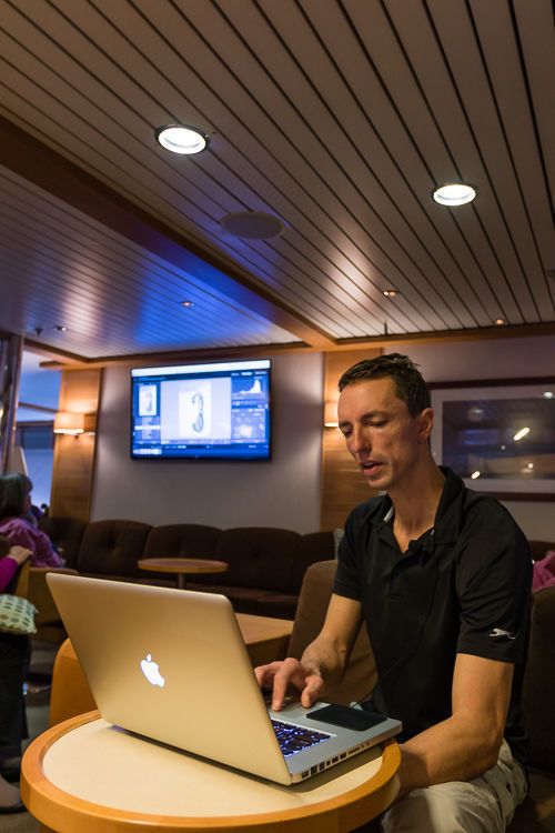 In the afternoon, after lunch, we visited Puerto Egas. This wonderful shoreline provided great scenery for photographers, who had the chance to spend some time with the sea lions basking on the beach, while other guests went for a swim in the warm waters of this island. We finished our day with a delicious dinner served on the sky deck on National Geographic Endeavour II.
